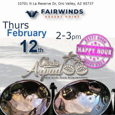Before he was a premier steel drummer, Chris Arpad’s career was forged in the high-pressure world of the Ringling Bros. and Barnum & Bailey Circus and as the drum corps leader for the City of McPherson Bagpipe Band. Having started his professional career at just 14 years old in a Country Western band, Chris spent 27 years in Los Angeles as a session artist and brand ambassador for the Cayman Islands. Today, he brings that world-class entertainment pedigree to the Southern Arizona event scene.